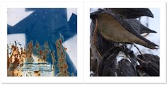 There are so many symbols, so many analogies we can bring along. As an artist, I chose a visual one—juxtaposing urban surfaces in their own life stages. A garbage bin’s shiny new coat of paint. The beginnings of cracks in a pavement. A rusted fence worn out by the elements.